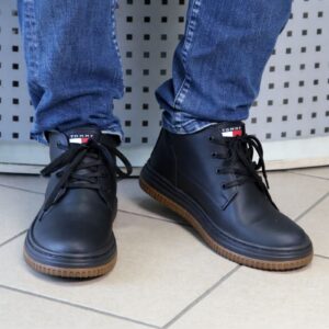 Чорні шкіряні чоловічі зимові черевики з хутром