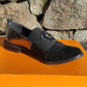 Матеріал: натуральна замша та шкіра Всередині: натуральна шкіра Колір: чорний з сріблястими вставками Виробник:Україна Повнота:На широку ногу не підходять! Підошва: ТЕП Висота танкетки:1,5 см Розміри: 39