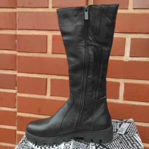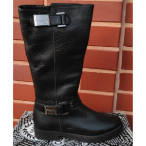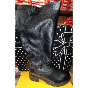Чорні шкіряні зимові жіночі чоботи з хутром