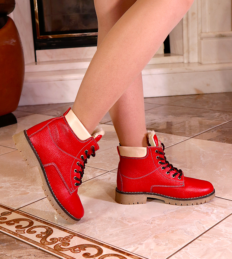 Головна » Магазин » Червоні шкіряні зимові жіночі черевики з хутром