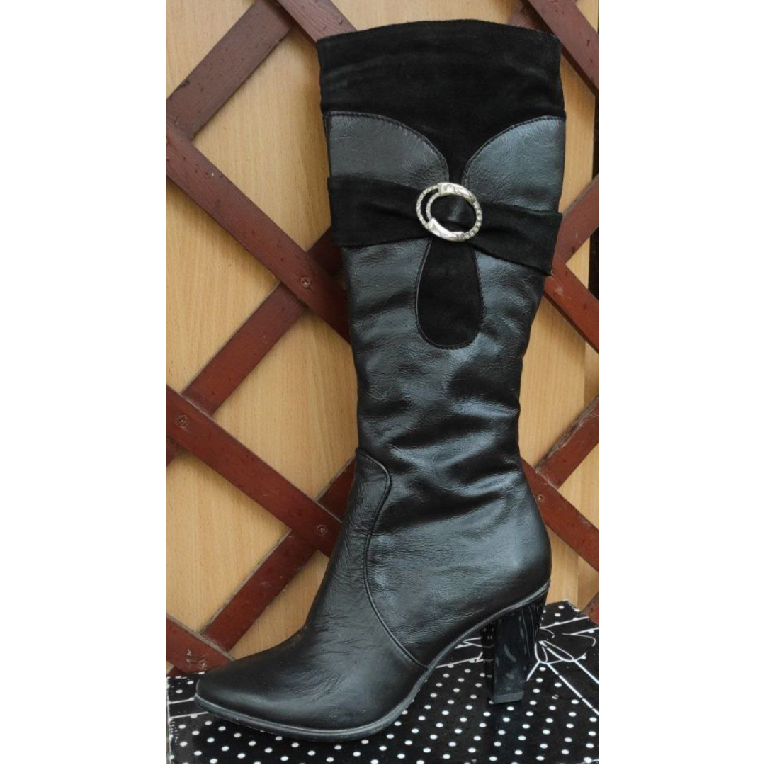 Головна » Магазин » Чорні шкіряні зимові жіночі чоботи з хутром