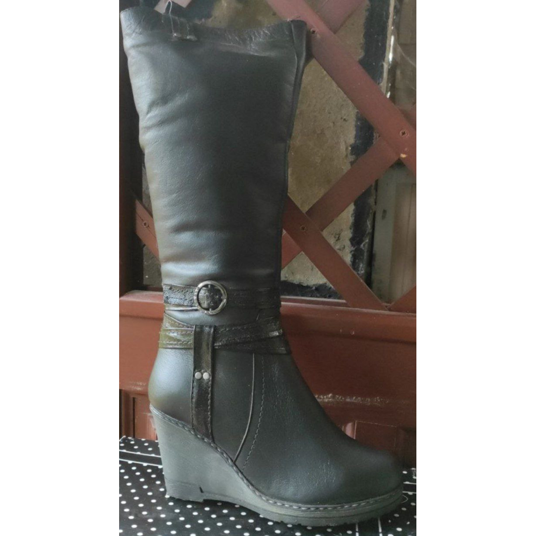Головна » Магазин » Чорні шкіряні зимові жіночі чоботи з хутром