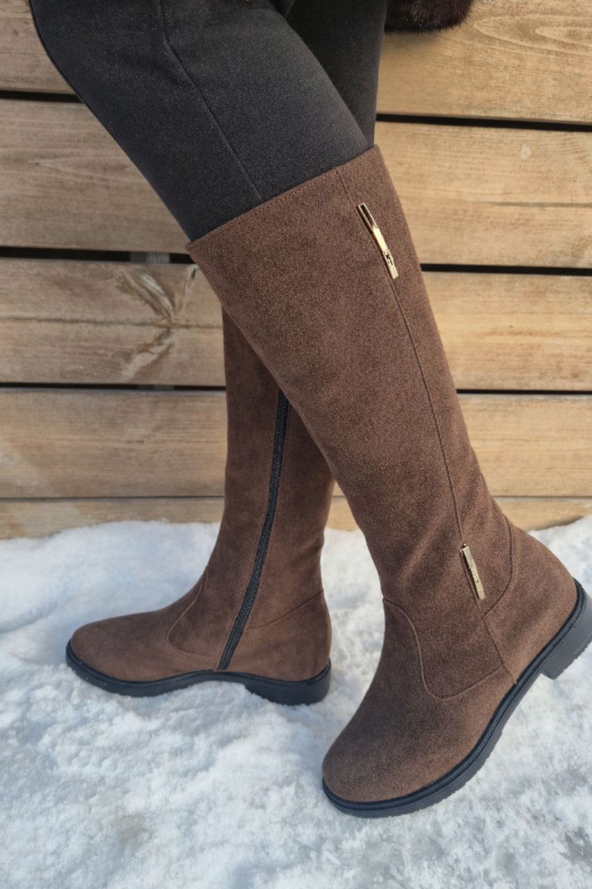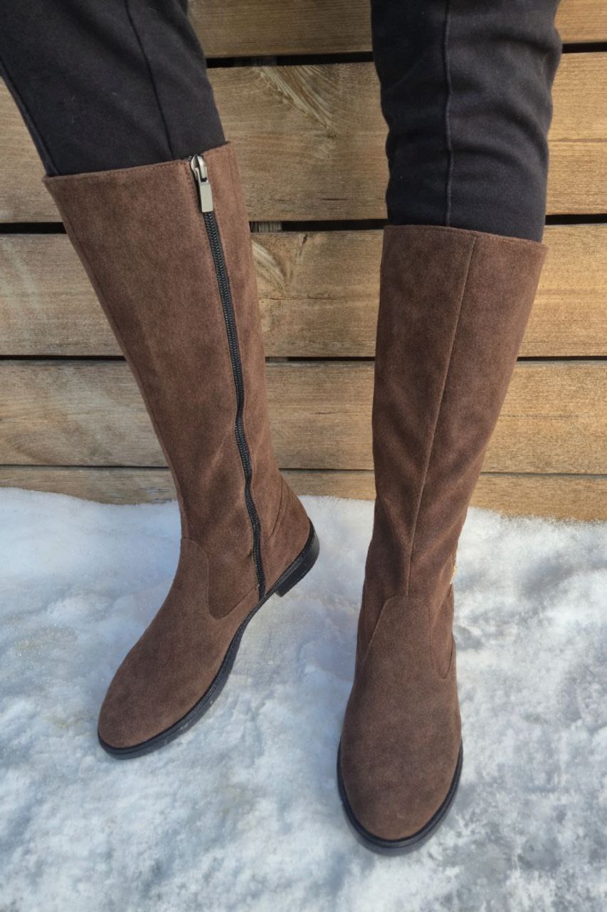 Головна » Магазин » Коричневі замшеві демісезонні жіночі чоботи на байці