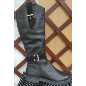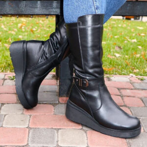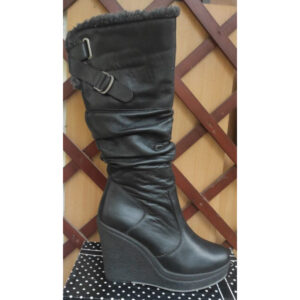 Чорні шкіряні зимові жіночі чоботи з хутром